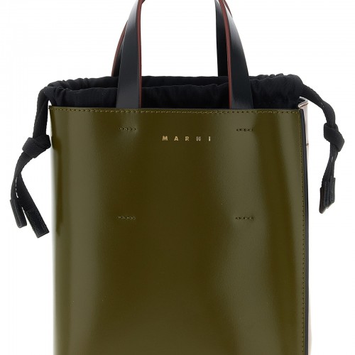 Small suede ‘Tie Me’ handbag with removable belt detail, front embossed logo, fixed handle, magnetic flap closure, adjustable and removable shoulder strap.