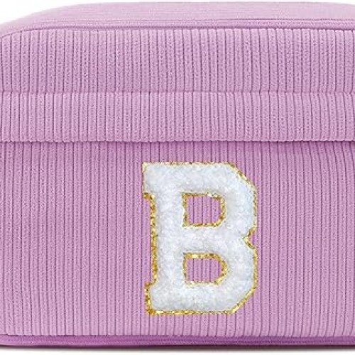 Narwey 2 Piece Personalized Initial Makeup Bag Checkered Cosmetic Bags, 6 8 10 11 12 13 14 16 18 Years Old Teen Girl Gifts Trendy Stuff Birthday Gifts for Women, Travel Toiletry Bag (Purple Letter H)