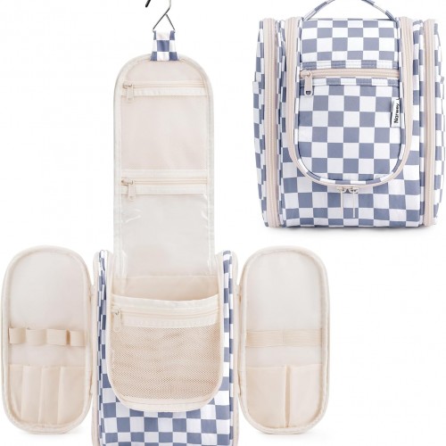Narwey Checked Hanging Travel Toiletry Bag for Women, Travel Bag for Toiletries, Makeup Bag Organizer Cosmetic Bags Make Up Bags for Women (Dusty Rose Checkerboard)