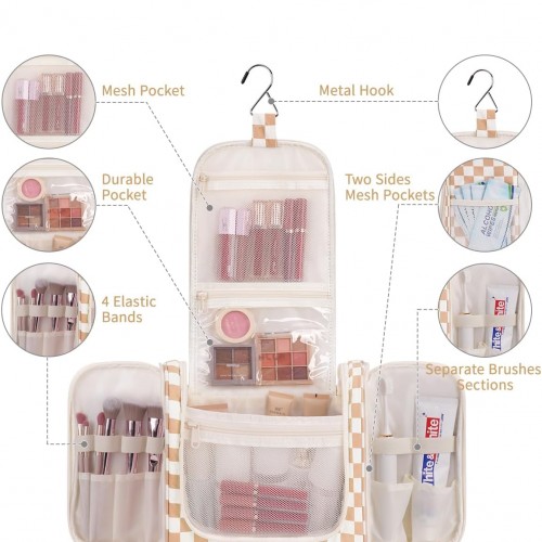 Narwey Checked Hanging Travel Toiletry Bag for Women, Travel Bag for Toiletries, Makeup Bag Organizer Cosmetic Bags Make Up Bags for Women (Light Checkerboard)
