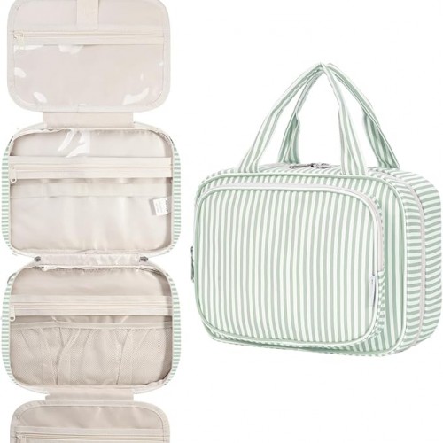 Narwey Clear Toiletry Bags for Traveling Women Men, Clear Travel Bags for Toiletries Makeup Bag Cosmetic Bag with Zipper, Make Up Organizer, Skincare Bag (Mint Green Checkerboard)