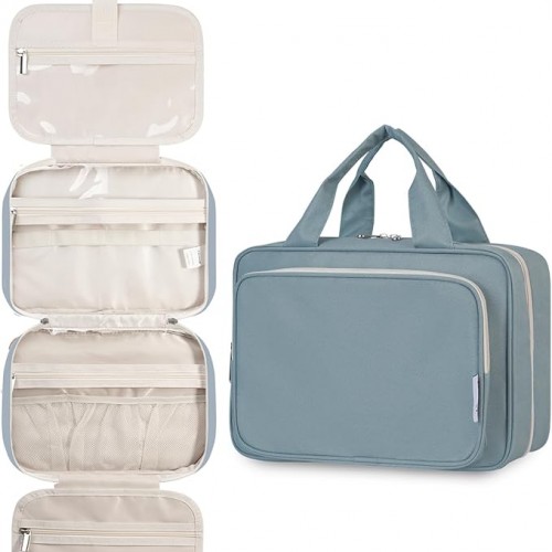 Narwey Hanging Floral Toiletry Bag for Women Travel Makeup Bag Organizer Toiletries Bag for Travel Size Essentials Accessories Cosmetics (Little Blue Flower (Medium))