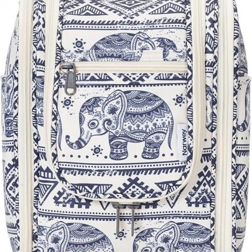 Narwey Hanging Toiletry Bag for Women Travel Makeup Bag Organizer Toiletries Bag for Cosmetics Essentials Accessories (Large, Beige Bird)