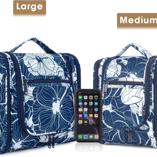 Narwey Hanging Toiletry Bag for Women Travel Makeup Bag Organizer Toiletries Bag for Cosmetics Essentials Accessories (Large, Blue Lotus)