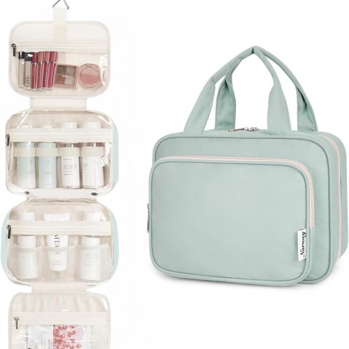 - NOT BULKY DESIGN – Large Capacity yet compact design, weighing 14 ounces. large metal hook allows hanging the toiletry case from towel rack, coat hook or whereever is available, making your toiletries and cosmetics displayed well for easy access
