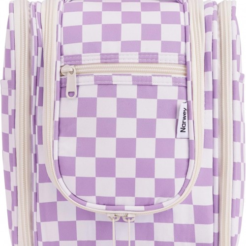 Narwey Small Checkered Hanging Travel Toiletry Bag for Women, Travel Bag for Toiletries, Makeup Bag Organizer Cosmetic Bags Make Up Bags for Women (Purple Checkerboard)