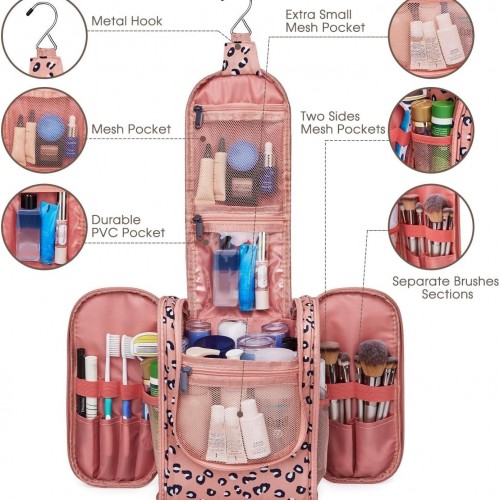 Narwey Small Hanging Cheetah Toiletry Bag Women Travel Makeup Bag Organizer Toiletries Bag for Travel Size Essentials Accessories Cosmetics (Medium, Orange Leopard)