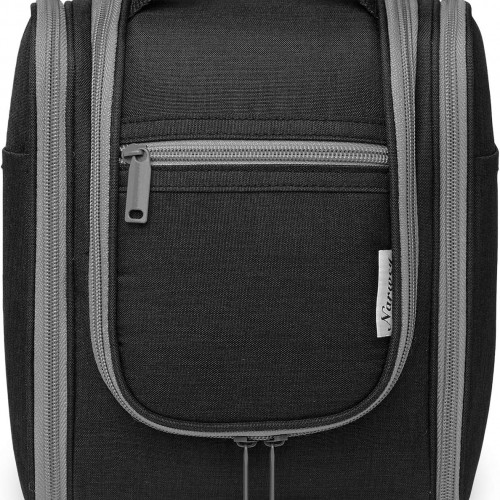 - DETAILS ORIENTED – Buit-in large metal hook allows hanging the toiletry case from towel rack, coat hook or whereever is available, making your toiletries and cosmetics displayed well for easy access, saving bathroom counter space as well. Water-resistent and durable fabric protects your gear from spills. Soft fabric and reliable zippers. Wide opening and rectangle shape makes it easy to stand on its own