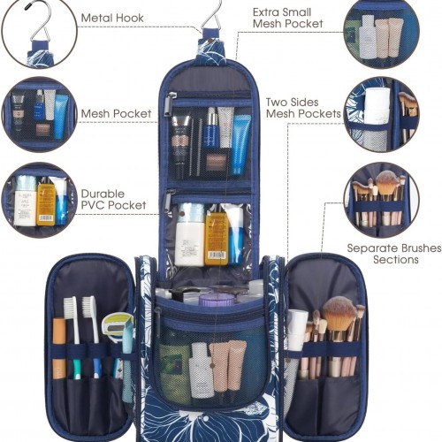 - 25cm tall main compartment fits travel toiletries like shampoo, toothpaste, makeup