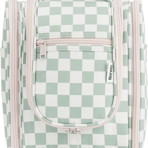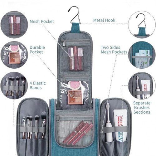 - DETAILS ORIENTED – Buit-in large metal hook allows hanging the toiletry case from towel rack, coat hook or whereever is available, making your toiletries and cosmetics displayed well for easy access, saving bathroom counter space as well. Water-resistent and durable fabric protects your gear from spills. Soft fabric and reliable zippers. Wide opening and rectangle shape makes it easy to stand on its own
