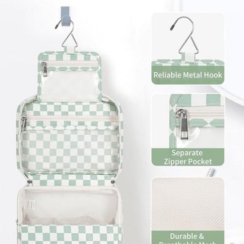 - SMART HOOK – Buit-in hook allows hanging the toiletry kit from towel rack, coat hook or whereever is available, making your toiletries and cosmetics displayed well for easy access and saves counter space as well