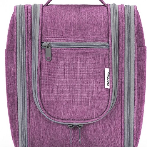 Narwey Striped Hanging Travel Toiletry Bag for Women, Travel Bag for Toiletries, Makeup Bag Organizer Cosmetic Bags Make Up Bags for Women (Greyish Blue Stripe)