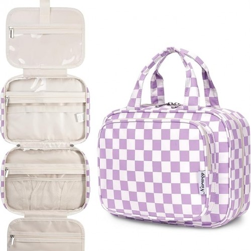 Narwey Travel Toiletry Bag for Women Large Hanging Makeup Bag Organizer Toiletries Bag for Full Size Essentials Accessories Cosmetics (Purple (Large))