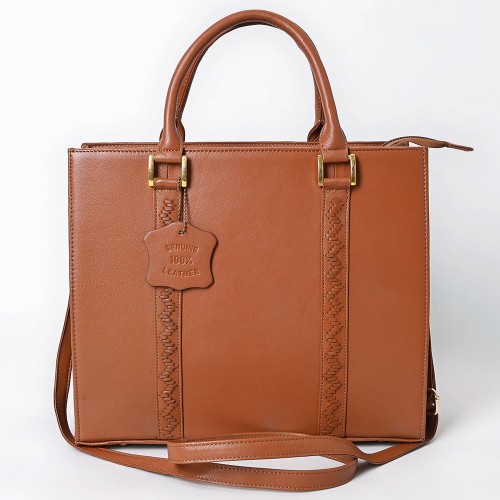 Never Mind Briefcase Genuine Leather Women Bag Western Handbag Purse CHESTNUT