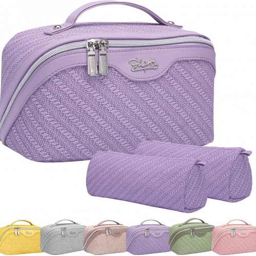 NISHEL Travel Toiletry Bag for Women Large Capacity, Makeup Essentials Organizer, Hanging Case for Accessories, Cosmetics, Purple