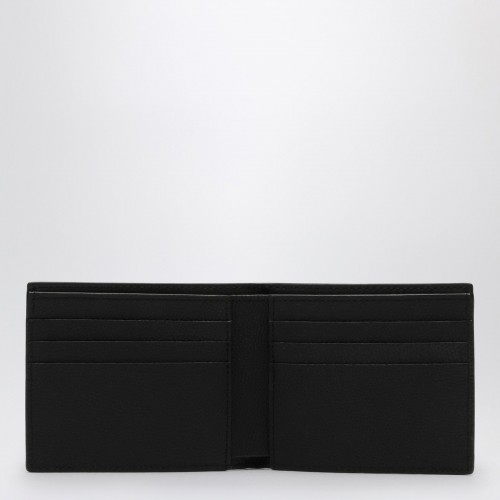 Bi-fold wallet in black calfskin with textured graphics reminiscent of a basketball by Off-White, featuring several internal card slots, flat pockets and a banknote pocket.