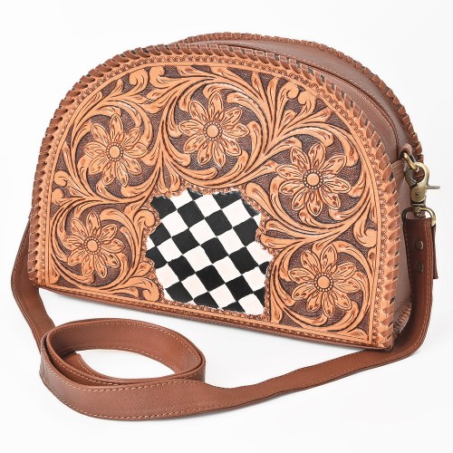 Be the first to review “OHLAY Hand-Tooled Canteen Bag Checkered Spade Dice Motif Hair-on Cowhide Siding” Cancel reply