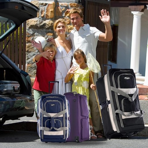 Olympia U.S.A. 33 inch Jumbo Size 8 Pockets Wheeled Rolling Duffel Bag Water Resistant Luggage Lightweight Travel Suitcase with Retractable Handle
