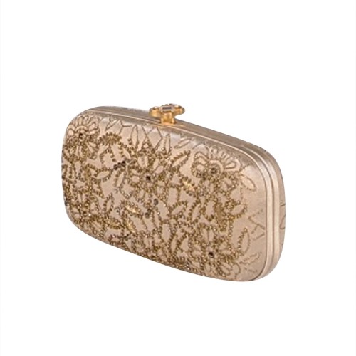 Oscar de la Renta – Gold Satin Beaded Clutch
