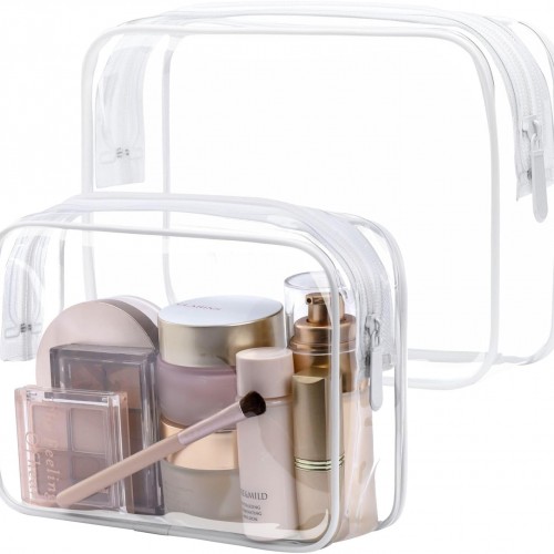 - Premium Quality: Features a 180° wide opening for easy access to makeup items. Includes a PU leather top handle for easy carrying. The reinforced PU leather and soft transparent plastic ensure the bag is tear-resistant, splash-proof, and easy to clean. Smooth zipper for hassle-free use
