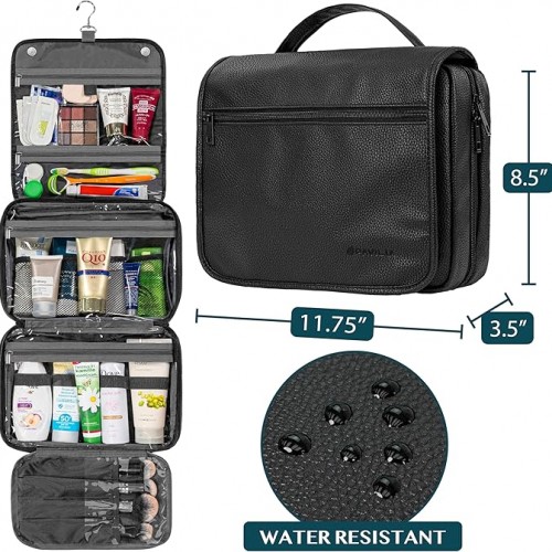 PAVILIA Hanging Toiletry Bag Women Men, Foldable Cosmetic Organizer Travel Bag, Water Resistant Makeup Bag Toiletries, Large Travel Essentials Kit (Black)