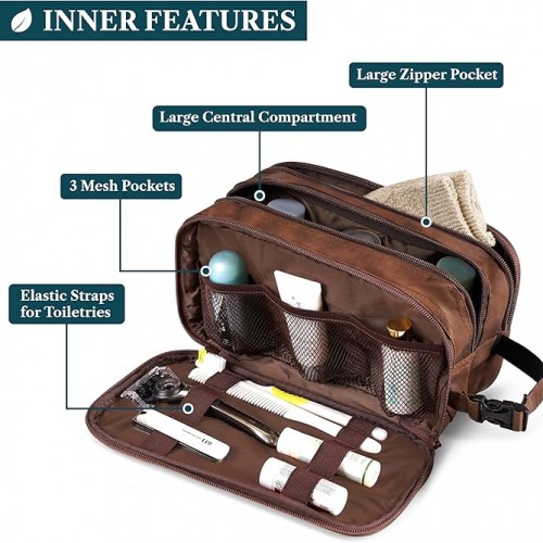 PAVILIA Toiletry Bag for Men, Travel Pouch Essentials Shaving Dopp Kit, Travel Bag Toiletries Organizer Case, Cosmetic Make Up Accessory, Water Resistant