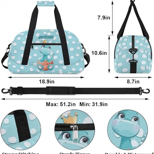 Personalized Duffel Bag for Kids Girls Boys, Dinosaur Spot Custom Name Gym Bag Overnight with Padded Handles Carry On Weekend Sports Travel Bag for School Practice Gymnastics Ballet
