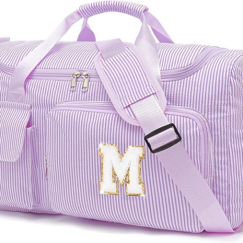 Personalized Gifts for Her, Kids Duffle Bag with Letter, Dance Bag with Makeup Toiletry Pouch, Shoe Compartment & Wet Separation, Preppy Trendy Stuff for Kindergarten Elementary Girls