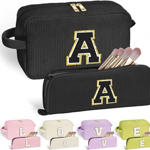 Personalized Initial Letter Bag Boho Straw Clear Makeup Bag,Small Cute Chenille Varsity Letter Bag With Zipper,Beach Travel Toiletry Bag,Portable Monogrammed Cosmetic Bag for Women Girls,C