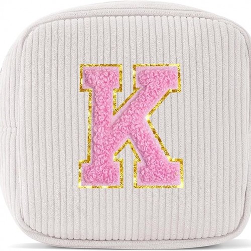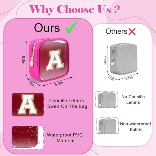 Personalized Initial Letter Clear Preppy Makeup Bag,Mini Nylon Chenille Letter Cosmetic Bag Cute Zipper Pouch Coin Purse for Teen Girls,Portable TSA Approved Travel Essentials Bag Gift for Women,A