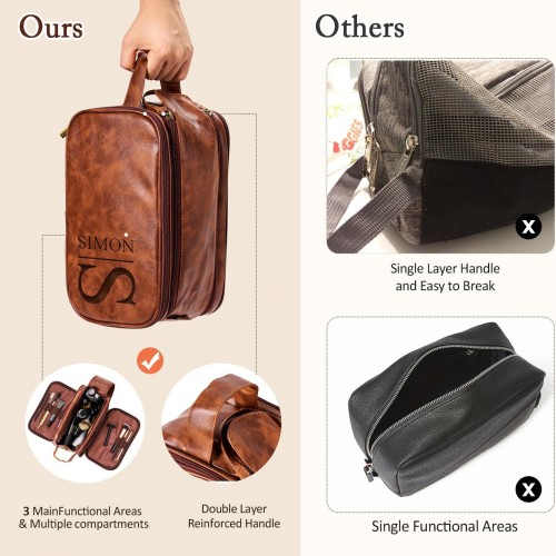 - 【Smooth Double Row Brass Zipper & Double-layer Reinforced Handle】This toiletry bag features a smooth double-row metal zipper to avoid zipper snagging troublesand the handles are reinforced with double stitched seams.