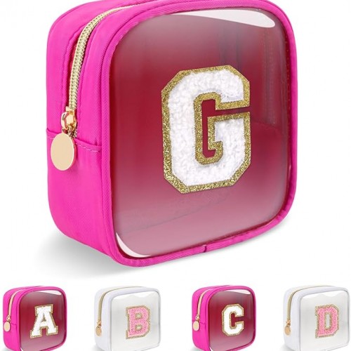 Personalized Quilted Cosmetic Bag, Puffy Monogrammed Christmas Birthday Gifts for Women & Girls, Cute initial Floral Makeup Bag Puffer Coquette Bag, Aesthetic Travel Toiletry Zipper Pouch(Blue,R)