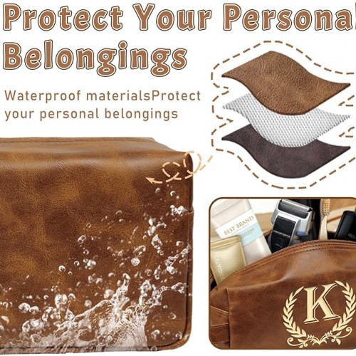 Personalized Toiletry Bag for Men Engraved Initial Leather Kit, Waterproof Travel Essentials Bag – DarkBrown(K)