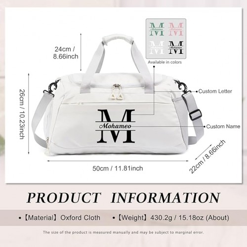 Personalized Travel Duffel Bag with Name – Custom Letter Oxford Cloth Gym Bag with Shoes & Wet Pockets Sport Bag Weekender Overnight Bag for Traveling for Women Men Gift for Christmas Groomsman Brides