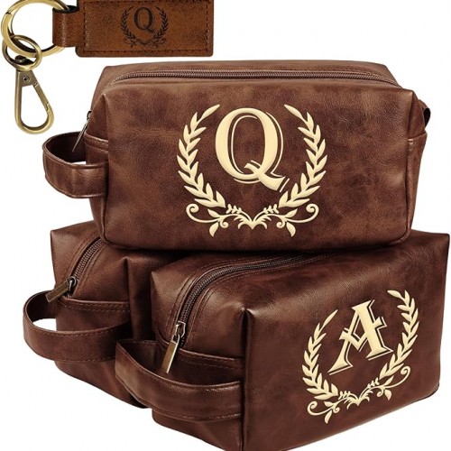 Personalized Travel Toiletry Bag Engraved Letter Leather Kit, Shaving Bag for Toiletries Accessories, Gifts for Men – DarkBrown(Y)