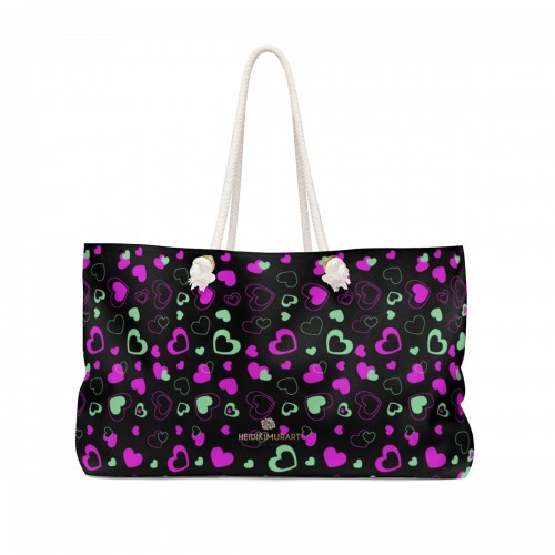 Pink Hearts Weekender Bag, Valentine’s Day Designer Large Oversized Bag- Made in USA 24×13