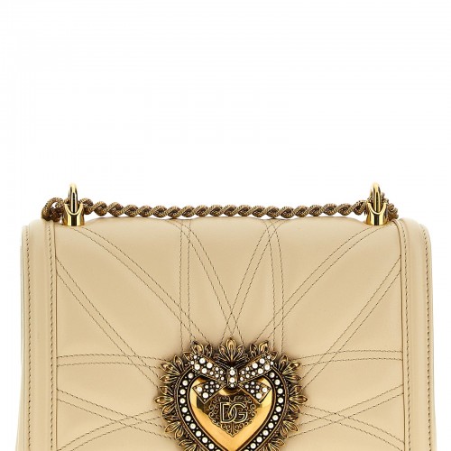 Quilted leather ‘Love big puff’ crossbody bag with metal buckle, flap closure with logo, chain and leather shoulder strap.