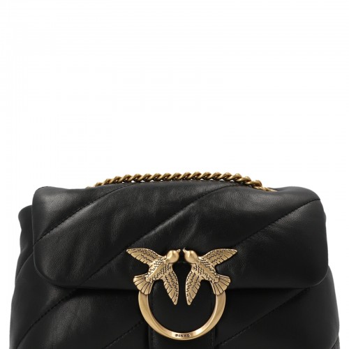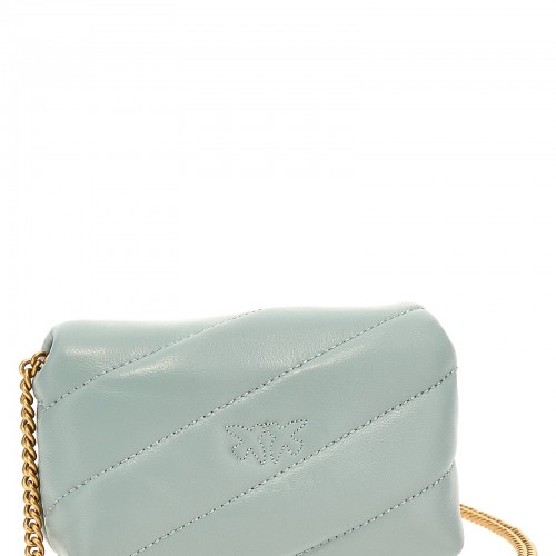 ‘Love Micro Puff’ quilted leather crossbody bag, flap closure with front metal logo appliqué, chain shoulder strap.