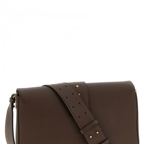 ‘Love One Classic’ leather crossbody bag, magnetic flap closure with front metal logo appliqué, removable shoulder strap.