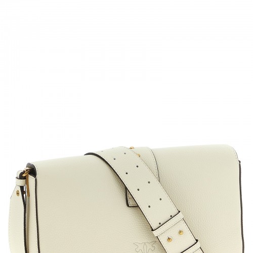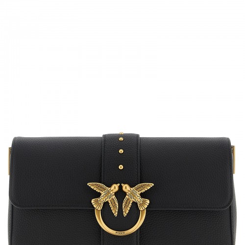 ‘Love One Classic’ grained leather crossbody bag, magnetic flap closure with front metal ‘Love Birds Diamond Cut’ logo and studs, adjustable shoulder strap.