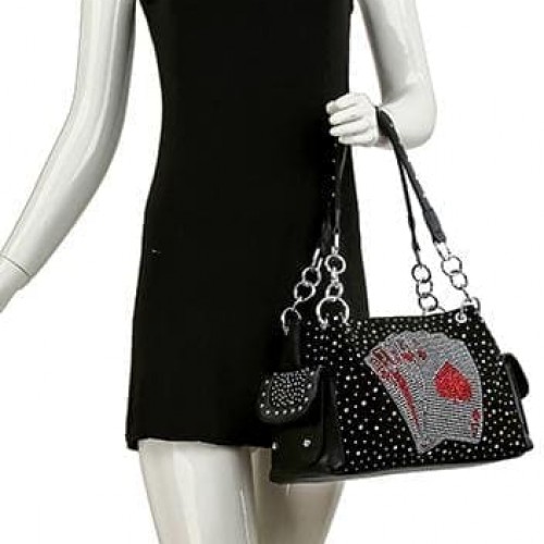 Step ahead of the pack with this attention getting handbag!! Sparkling rhinestone playing cards create such a dramatic fashion statement.