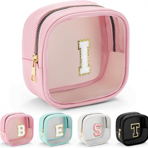 - [Premium Quality] – This clear small cosmetic case is crafted from high-grade saffiano faux leather, making it highly scratch-resistant, durable, and easy to clean. It features a smooth zipper for secure closure and elegant light gold metal accents for a luxurious touch.