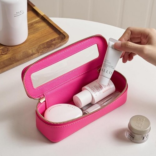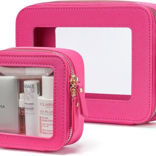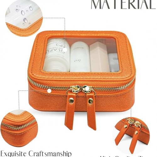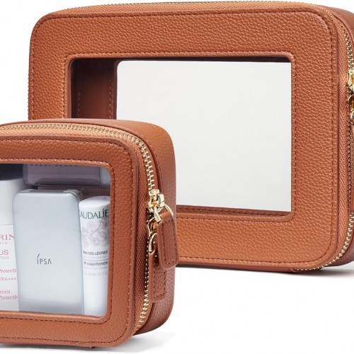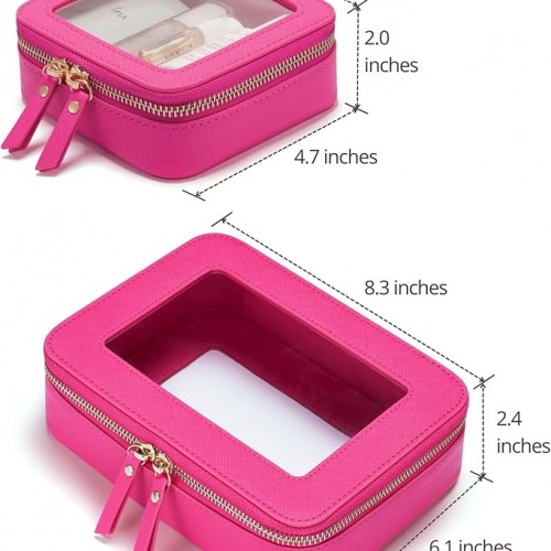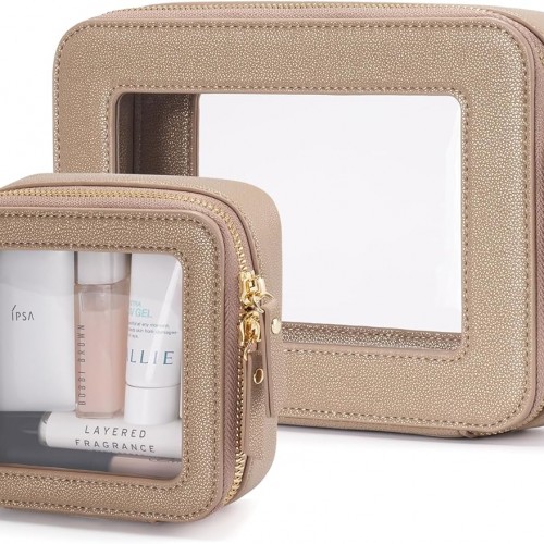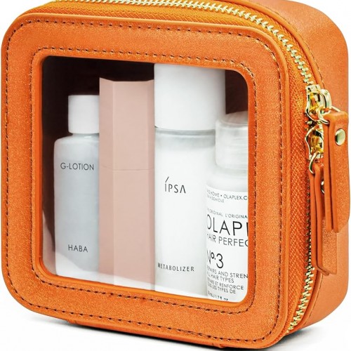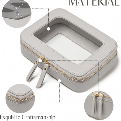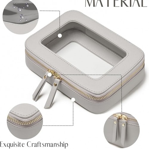 - [Premium Quality] – This clear medium cosmetic case is crafted from high-grade saffiano faux leather, making it highly scratch-resistant, durable, and easy to clean. It features a smooth zipper for secure closure and elegant light gold metal accents for a luxurious touch.