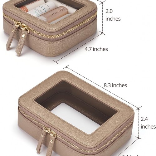 - [Compact and Portable] – The cosmetic bag measures 7.9” x 5.7” x 2.0” (20cm x 14.5cm x 5cm), designed to offer a compact and travel-friendly solution for organizing your makeup and toiletry essentials. It can be easily fit into a variety of bags, whether you prefer to carry it in a handbag, tote, or travel luggage. (NOTE: Medium size in beige grey is smaller than in other colors.)