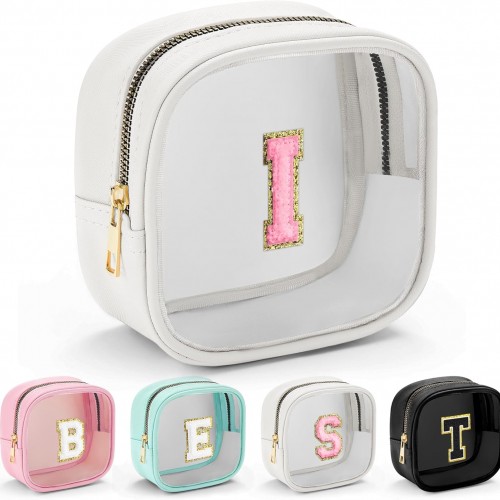 Popvibe Clear Makeup Bag Travel Cosmetic Case Transparent Toiletry Bag with Zipper, Portable Make Up Organizer Traveling Compact Car Bag for Essentials
