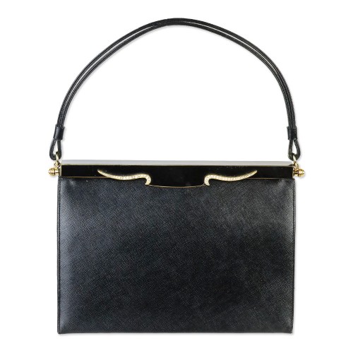 This Prada mini top-handle bag is a timeless evening essential, crafted from luxurious “Raso” black satin for a sleek, high-sheen finish. Featuring the iconic enameled metal triangle logo and polished silver-tone hardware, this compact silhouette offers a modern, minimalist take on 90s-inspired luxury.