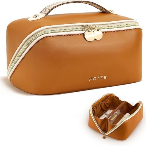 Prite Clear Makeup Bag Cosmetic Organizer Case Waterproof Travel Toiletry Bag Skincare Pouch with Golden Zipper(Blue)