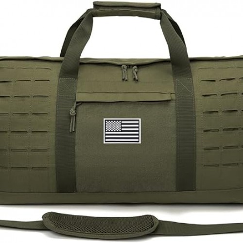 - 【PERSONALISE】 The Laser Cut Molle Webbing Design making this tactical duffle bag special. it uses Two Layers Fabric Laser Cutting MOLLE Hang System to allow all range of pouches attachment. Large area of Velcro to personalise with our range of patches. One US flag patch for gift(can be removed).