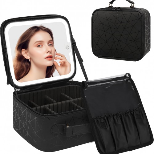 - Makeup Mirror with 3 Color Lights: The makeup bag with a rechargeable lighted makeup mirror, 3 Color Lights, and Brightness adjustment. providing white light, warm light, and cold light. Short press the sensor switch to change the color of the light, and long press to adjust the brightness of the light.