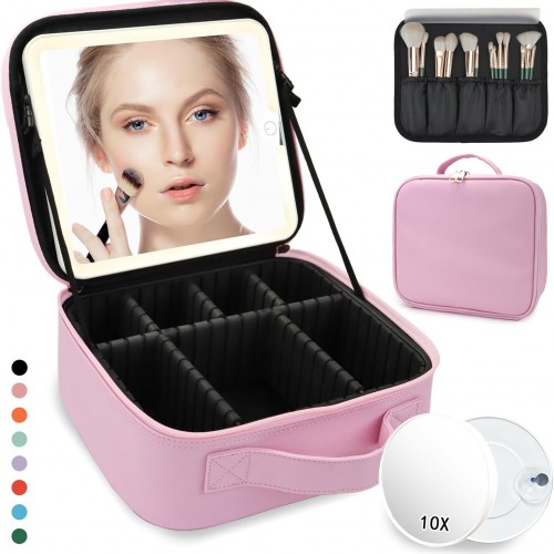- 【RELAVEL MAKEUP BOX with led mirror】Large capacity cosmetic organizer case with makeup brush storage and 3 colors 4K silver plated led mirror. It is made of high quality PU leather, which is durable, waterproof, and easy to clean